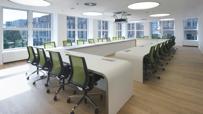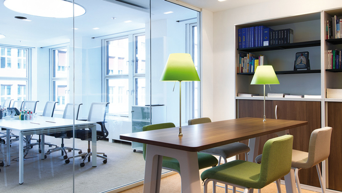 會議室的設(shè)計(jì):此處可以容納將近30個人,在這里開放是空間的主旋律,在這里員工感受到的是一種輕快之感,這也是設(shè)計(jì)師希望看到的,在設(shè)計(jì)師看來一個輕快的會議空間,可以在無形中化解對于員工的壓力,讓員工可以在這里的空間中得以自由發(fā)揮。