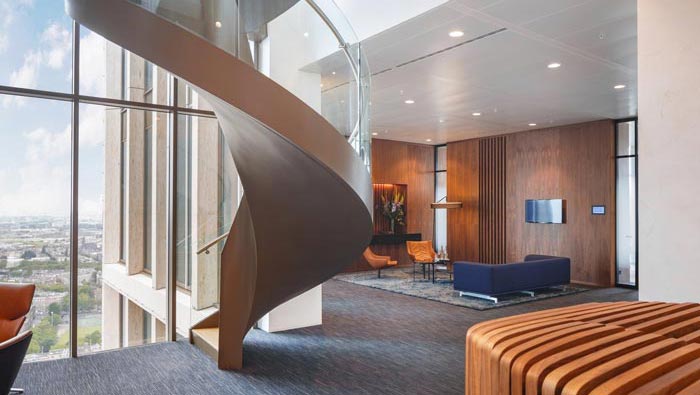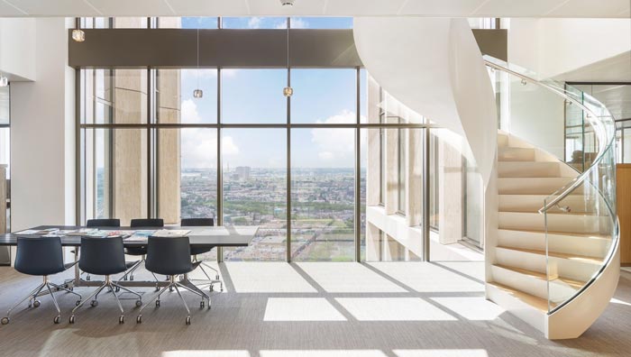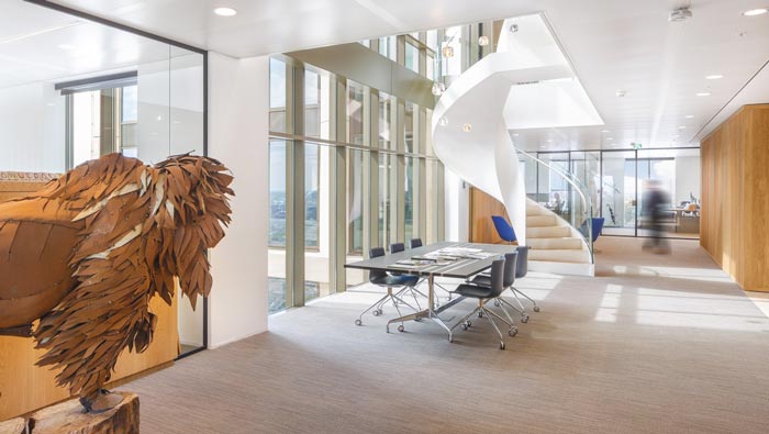 會(huì)議室的設(shè)計(jì):此次四周幾乎都是通透的,這樣的空間仿佛把人的壓力都抽走了一般,人的思緒有時(shí)候就如室外的風(fēng)一樣,讓人捉摸不定,但是當(dāng)我們有一顆穩(wěn)定的心之后,我們感受到的就是內(nèi)心的安靜,在此處給我們的就是這樣的感覺(jué),在這里仿佛什么都不在重要,思緒一下子變得輕盈起來(lái)。