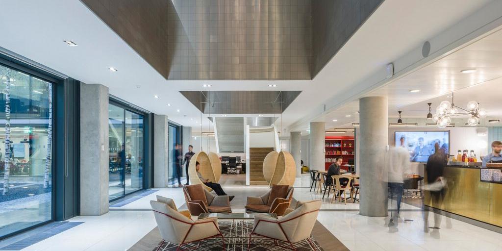 接待區(qū)的目的是要反映一個更開放和合作的工作空間,而不是封閉的歡迎更傳統(tǒng)的辦公室,一個中央酒吧和咖啡廳區(qū)占主導的入口空間。跳躍式工作室擺脫了該機構更多的細胞化和分區(qū)化的感覺,設計了一個非正式、時尚、實用的開放式規(guī)劃空間。