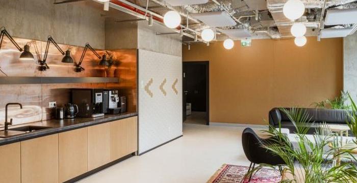 辦公室旅行的下一階段是加油站。公共區(qū)域的一個部分是電池充電的地方--手里拿著一杯咖啡。就在它旁邊,我們有自助餐廳,靈感來自路邊的酒吧。最后,公共區(qū)域的最后一部分是海灘,專門用于休息和合作。位于中心位置的公共空間既能整合近300名工作人員,又能保持工作區(qū)域的平靜。我們在那里也有三個不同的區(qū)域:一個舒適的,私密的辦公室,優(yōu)雅的汽車內(nèi)飾和一個原始的,極簡的,絕對是最“辦公室”的閣樓。