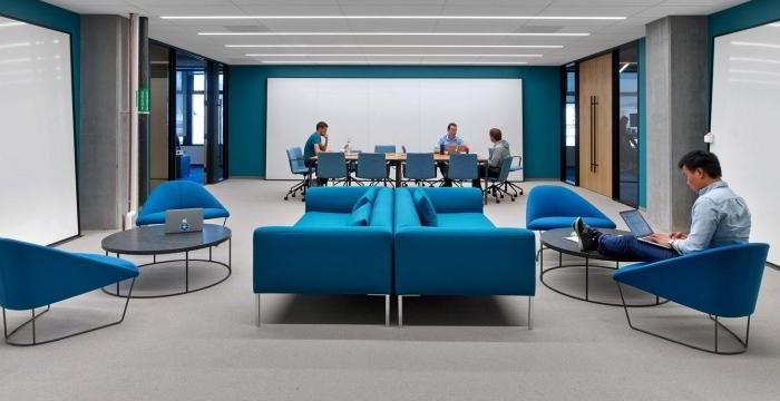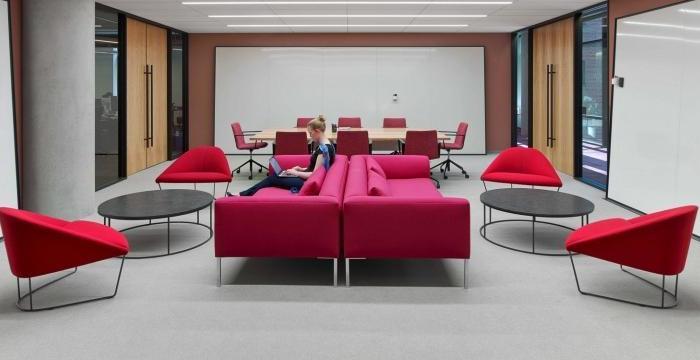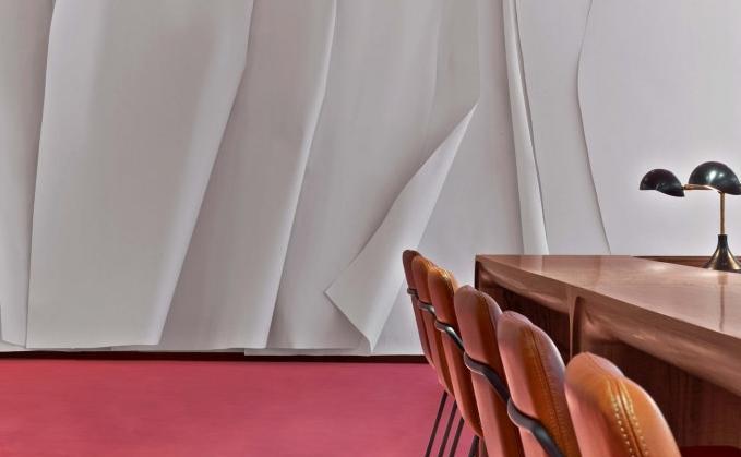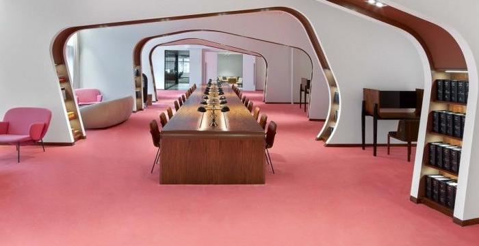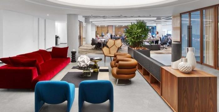 這次來帶一家數(shù)據(jù)存儲公司辦公室裝修設(shè)計(jì)案例,空間面積1020平方米。靈感來自一個(gè)模糊的,70年代的意大利劇院,它到處都是圓角和毛絨地毯,是退卻閱讀或發(fā)送電子郵件的理想選擇。