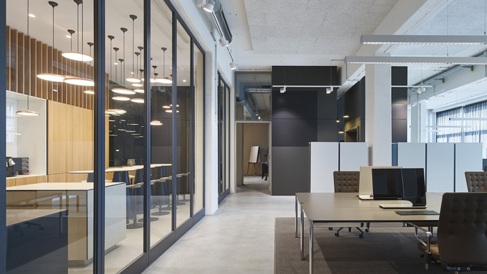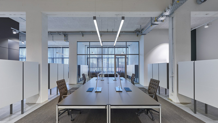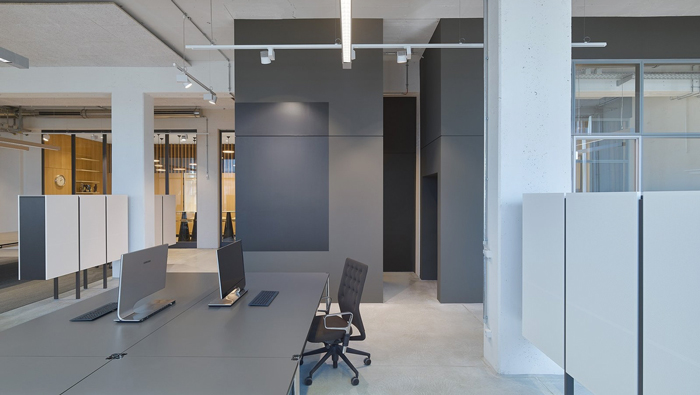 辦公區(qū)域細節(jié)的設計:此處可以看出設計師在辦公桌的選擇上,可謂是煞費苦心,設計師的目的就是希望簡單可以進行到底,設計師希望為員工打造一個舒適、輕松的辦公場所,辦公桌在員工平時的辦公中意義十分重大,故此設計師希望員工可以自己去安排辦公桌上的裝飾,這可以最大程度上照顧到每一個人。