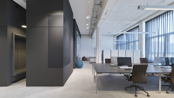 辦公區(qū)域的設計:開放式的辦公區(qū)域是此空間給人的第一感覺,設計師在設計的時候,為每一個員工都預留了足夠的活動空間,兩邊的儲藏柜隔離了與周邊空間的聯(lián)系,但是又是隔而不分,設計師需要的就是一個完整的整體,在整體之下去拓展一個個的小空間。