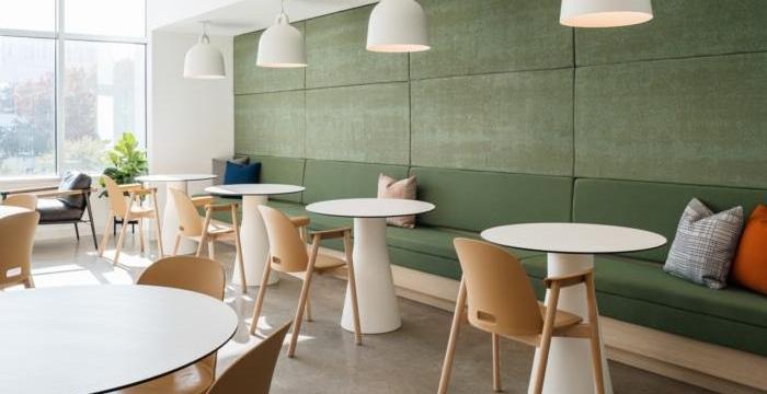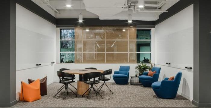 這間辦公室的一個獨特元素是在整個創(chuàng)新工作室的引入,我們引進了一些新的方式既有趣又協(xié)作的產(chǎn)品。