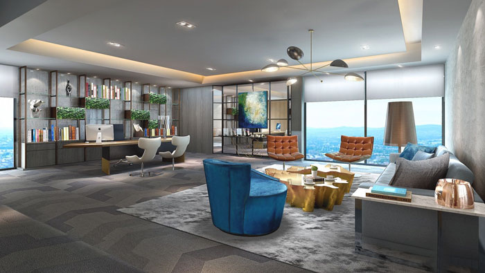 董事長辦公室設計:設計師在設計的時候,主要就是希望將室外的景色引入室內(nèi),真正做到室內(nèi)與室外的交融融合,這樣的空間風變得清新、陽光變的明媚,仿佛時時刻刻在旅行,同時使空間具有吸引的屬性,真是讓人羨慕不已。