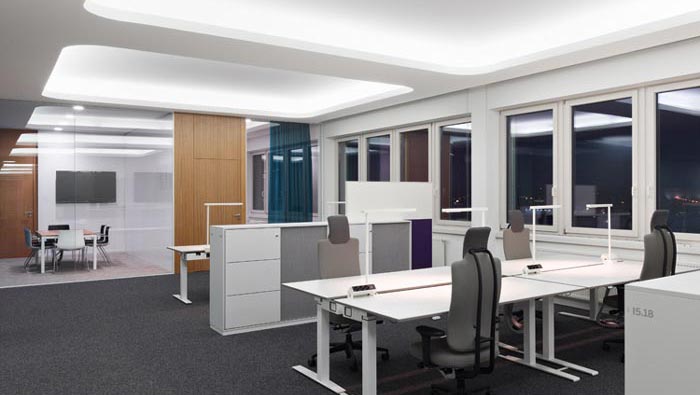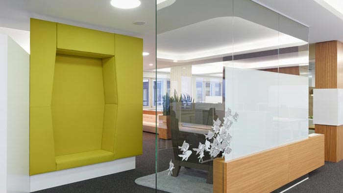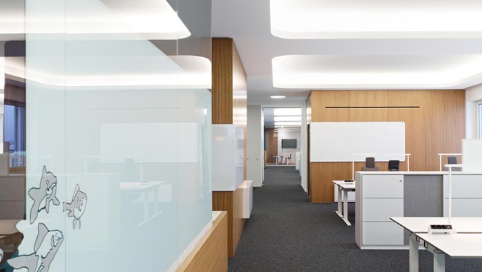 辦公區(qū)域的設(shè)計(jì):設(shè)計(jì)師在設(shè)計(jì)的時(shí)候,在采用開放式辦公的同時(shí),以儲(chǔ)存柜代替隔斷將每一個(gè)辦公工位進(jìn)行隔離,在設(shè)計(jì)師看來(lái)這樣的設(shè)計(jì)可以有效的彌補(bǔ)開放式的缺點(diǎn),同時(shí)讓空間看起來(lái)更加有層次感,儲(chǔ)藏柜的設(shè)置也很好的解決了空間容納的缺憾,真是一舉兩得。