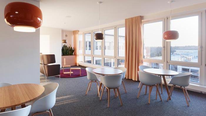 休息區(qū)域的設(shè)計(jì):設(shè)計(jì)師在設(shè)計(jì)的時(shí)候,將此處設(shè)置在向陽(yáng)的空間之中,在設(shè)計(jì)師看來(lái)陽(yáng)光是人類無(wú)法拒絕的誘惑,暖洋洋的陽(yáng)光透過(guò)落地窗射入室內(nèi),為空間帶來(lái)了光明與溫暖,設(shè)計(jì)師希望讓員工在這樣的空間之中,可以放松自身,在暖洋洋的空間中尋找自我而。