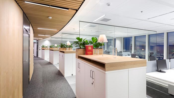 獨立辦公區(qū)域的設(shè)計:此處就是一個個獨立的辦公空間,通過上圖可以明顯看出,區(qū)域與區(qū)域之間有隔斷墻隔離開,這樣做的目的旨在盡量減少開放式辦公室工作的不適,從而在各個部門之間配備玻璃隔斷物,這樣可以既不會破壞整體的設(shè)計,同時也可以形成一個個獨立的辦公空間,真是一舉幾得。
