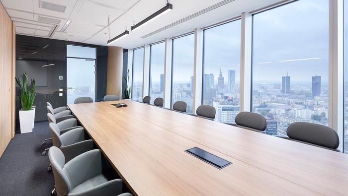 會議室的設(shè)計:此處給人的第一感覺就是視野非常寬敞,這也是設(shè)計師特意為之,在設(shè)計師看來會議本身要解決的,就是企業(yè)在發(fā)展過程中遇到的各種問題,故此大局觀十分重要,此次會議室可同時滿足24人參加會議,在這里設(shè)計師將室內(nèi)空間與室外空間相互交融在一起,讓人仿佛置身于自然中一般,以此提升大家的大局觀念。