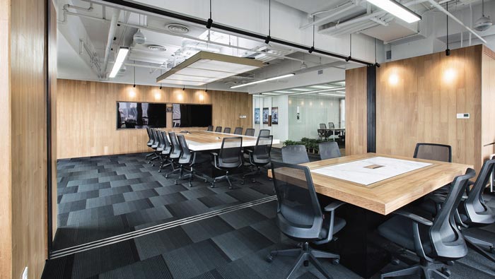 會議室的設(shè)計:設(shè)計師在設(shè)計的時候,打算設(shè)計一個小會議室與小會議室結(jié)合的會議空間,大會議室安置在空間的內(nèi)部,小會議室安置在空間的外側(cè),兩者之間呈一條直線分布,這樣布局的好處就是為空間預(yù)留了足夠的活動空間,活動空間與動線相互結(jié)合在一起,既保證了空間的通暢又保證了空間的正常運行。