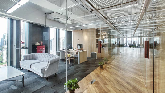 董事長辦公室的設(shè)計:設(shè)計師在設(shè)計的時候,與董事長進行了深入的交流,通過交流了解到董事長喜歡安靜與寧靜,這也就是設(shè)計師將此處安置在空間深處的原因,同時此處的視野也極好,讓董事長在辦公之余可以俯視與欣賞到整個外部美景,以此在不知不覺中提升董事長本人的視野。
