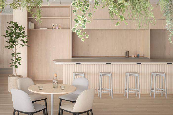 靠近街邊窗戶的區(qū)域,被設計成一個鼓勵快速會議和跨部門互動的空間。會議室是公司的形象,旨在表達企業(yè)的身份,將墻壁和天花板漆成企業(yè)色的弧形照明和生物群落相結合,以表達企業(yè)的進步和速度。
