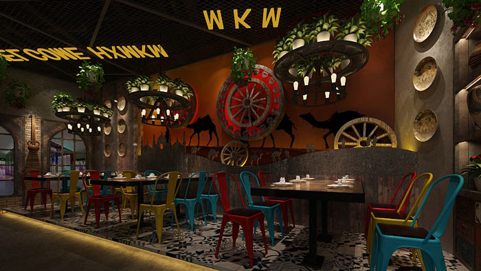 本次特色主題餐廳裝修設計方案講解到此結束,在本次餐廳設計中,設計師以工業(yè)風格為主基調,搭配新疆元素,目的就是為了將其融合在整個空間設計之中。