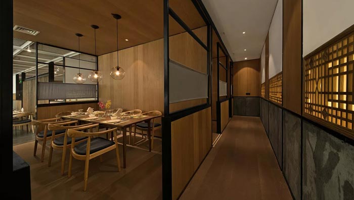 特色川菜館過道設(shè)計:設(shè)計師在過道設(shè)計中,以餐區(qū)為設(shè)計主線,設(shè)計師的目的就是希望兩者之間相處的更加融洽,在設(shè)計師看來,設(shè)計就是將空間與空間、區(qū)域與區(qū)域相互融合。