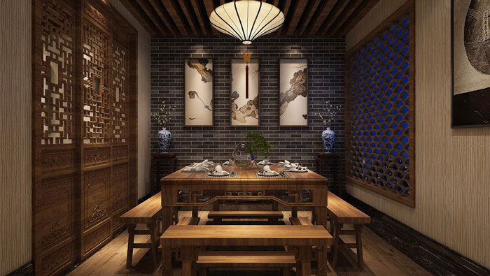 中式川菜館二樓包廂裝修設(shè)計:清靜是這里給客戶的第一感覺,客戶在這里享受美食,在這里觀看美景,在這里稍事休息,在這里感受到生活的美好,在這里短暫停留,享受難得的寧靜一刻。
