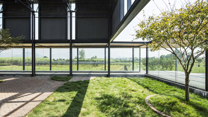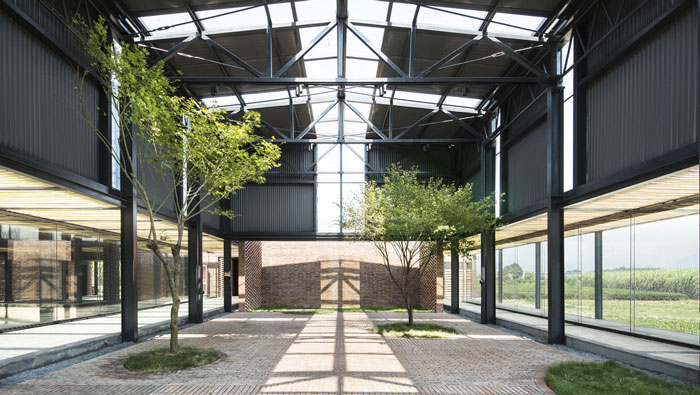 紅糖廠房休息區(qū)裝修設(shè)計(jì):這里是一個(gè)相對(duì)封閉的空間,所以周圍村里的小孩子也可以在這里玩耍,這里的員工基本上都是村子里面的人,故此在工作之余,在這里享受天倫之樂。