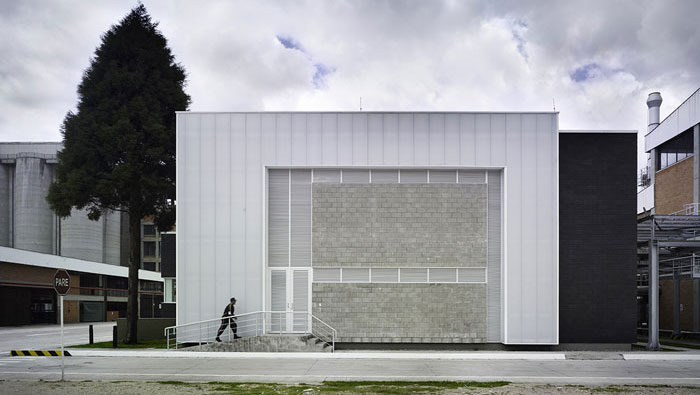 工廠廠房行政樓入口裝修設(shè)計:潔白的辦公樓外墻,給廠區(qū)不一樣的感覺,白色不易打理,設(shè)計師在設(shè)計中特意做了處理,目的就是希望白色可以長久保持,這也是廠區(qū)的一大亮點(diǎn)。