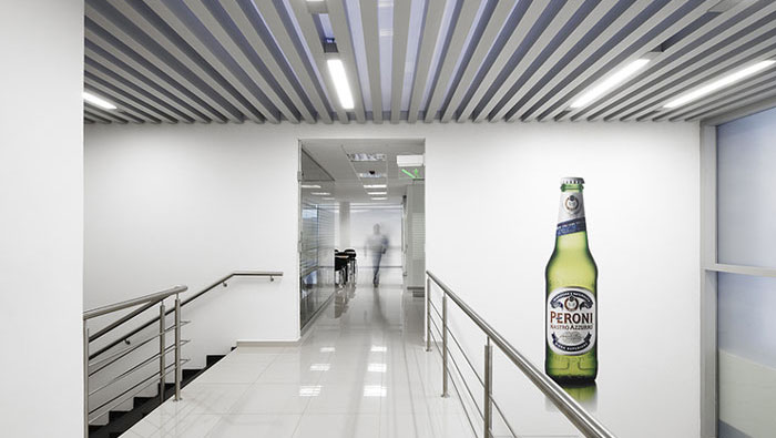 工廠廠房辦公區(qū)二樓裝修設(shè)計:二樓過道好似云梯,潔白的空間給人一種別樣的感覺,讓空間不在單調(diào),大大的啤酒瓶鑲嵌在空間的白墻上,既做為點(diǎn)綴,同時也作為企業(yè)的品牌宣傳。