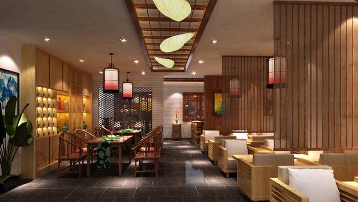 中式茶餐廳飲茶區(qū)設計:幾個朋友可以在這里邊飲茶、邊聊天,生意伙伴也同樣可以如此,現在的大部分人都喜歡這樣安靜的氛圍,在這里一切都變的親切起來。