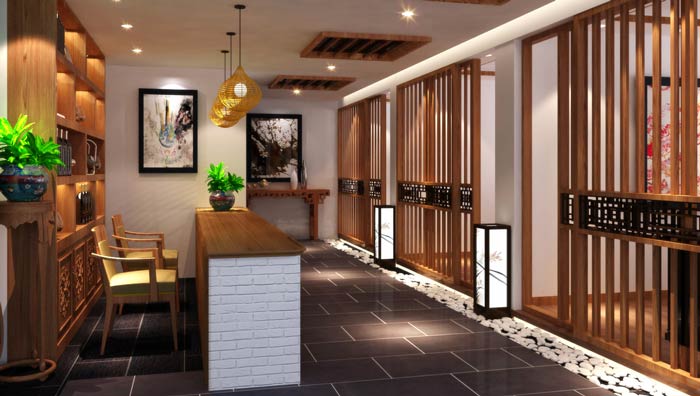 本次為中式茶餐廳裝修設計方案,在設計中設計師將設計風格定位于中式風格,之所以有這樣的設計定位,是因為茶餐廳的地理位置決定的,茶餐廳位于的街道上中式風格林立,設計師為了避免出現突兀,故此以中式風格為設計主線,以現代簡約為副線,打造一個現代與傳統相結合的設計。