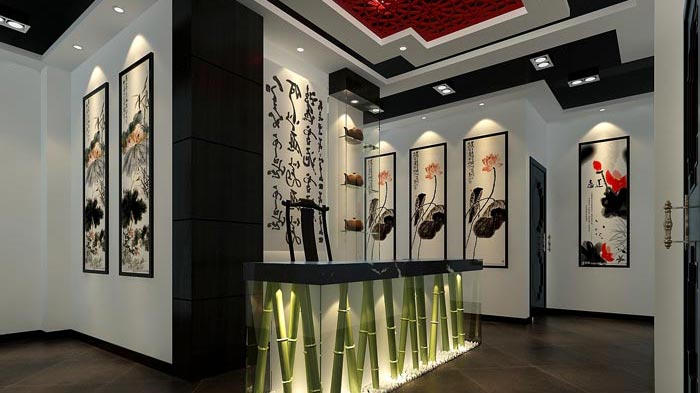 設(shè)計理念:設(shè)計師在茶樓茶室裝修設(shè)計的時候,設(shè)計師知道中國是茶的故鄉(xiāng),茶文化是中華五千年歷史的瑰寶,所以在裝修設(shè)計的時候自然的融入了中國古文化。