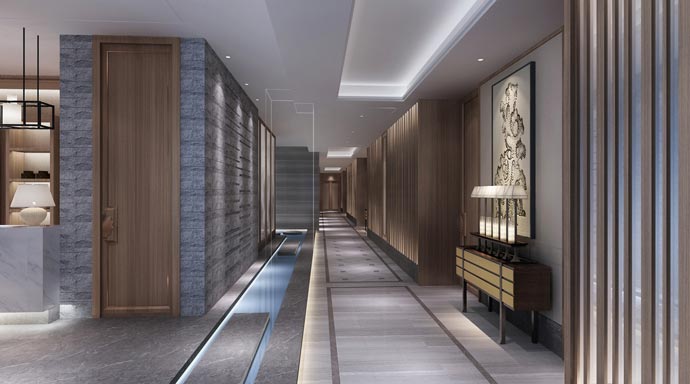 設(shè)計(jì)師為結(jié)合現(xiàn)代的消費(fèi)人群,風(fēng)格整體定位為東方偏西風(fēng)格,整體思路減輕了東方的元素,融入西方的符號(hào),并加入禪意體驗(yàn)。