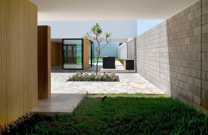 極簡別墅帶有大自然氣息,U字型的別墅設(shè)計(jì)棱角分明。在住宅中的庭院或者其他的空曠空間往往被定義為是一個(gè)等價(jià)空間,沒有一個(gè)特定的作用。不過,這樣的空間在一個(gè)景觀設(shè)計(jì)中卻是必不可少的,界限模糊的原始空間往往會(huì)被設(shè)計(jì)師們改造成不同的風(fēng)格種類。