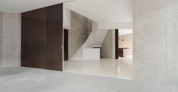 L 形狀別墅是一個同時包括辦公區(qū)域和公寓區(qū)域的單戶住宅,它被雕刻成一塊巨大的混凝土石,看起來就像是內(nèi)外都是混凝土,而沒有任何隔斷和涂層。