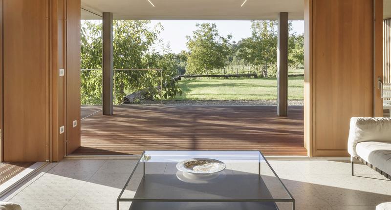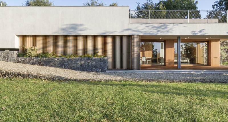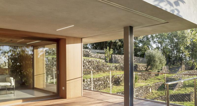 這個只有一層樓高的居住空間,有著通向自然的大窗戶,在柑橘林之間。最初的設(shè)計干預(yù)應(yīng)該只包括對位于廣大農(nóng)業(yè)地產(chǎn)中心的主住宅周圍的外部區(qū)域進(jìn)行改造。除此之外,在幾十米之外,還有一個游泳池要完工,停在一個部分地下的工具棚上。有人建議加強這一看似次要的區(qū)域,并將其改造成一座外建筑,成為一個居住和招待的空間。一個親密的避難所和一個風(fēng)景觀測站。建筑與自然的融合是該項目的基礎(chǔ),很少有元素具有必要的設(shè)計功能,可以定義一個與周圍景觀保持強烈的視覺和物質(zhì)連續(xù)性的室內(nèi)空間。