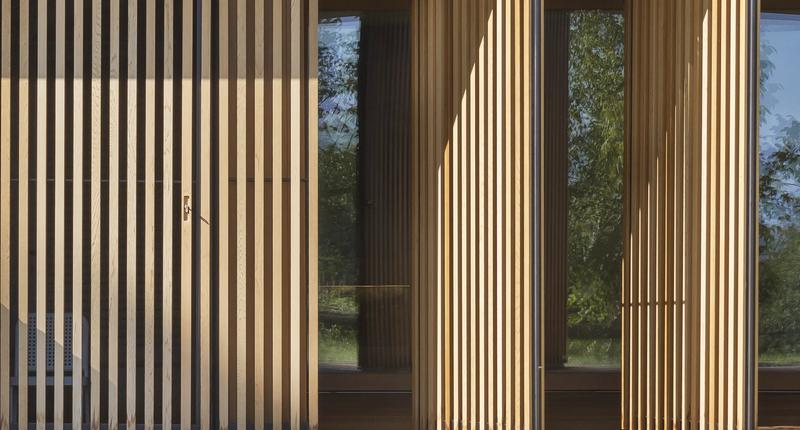 一間鄉(xiāng)野別墅,頗具自然簡約風(fēng)格,空間面積390平方米。居住空間是連續(xù)的,有幾個要素以流動的方式定義不同的功能區(qū),生活和睡眠區(qū)域被家具元素和滑動板過濾。