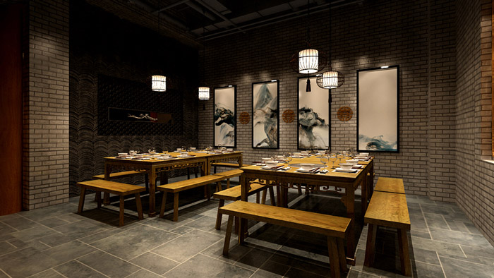 本次為火鍋店裝修設(shè)計(jì)效果圖,設(shè)計(jì)師在火鍋店設(shè)計(jì)中,融合了當(dāng)?shù)靥厣?、與便捷的動(dòng)線系統(tǒng),目的就是希望打造一個(gè)眼前一亮、留下深刻印象的火鍋店設(shè)計(jì)方案。