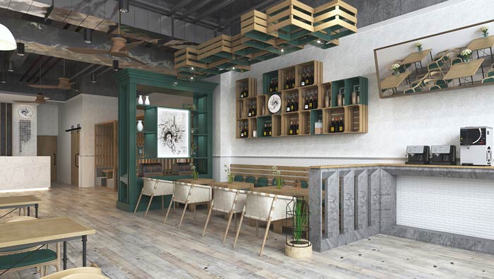 本次為街角的咖啡店裝修設(shè)計方案,在設(shè)計中設(shè)計師以“會不會忽然出現(xiàn)在,街角的咖啡店”為設(shè)計構(gòu)思,定下了舒適、安靜、巧遇的屬性,咖啡廳位于街角,為彼此之間的相遇創(chuàng)造了可能,坐在這里看著窗外走來走去的人影,大家有緣聚在此地,共同享受這美好的一瞬間。