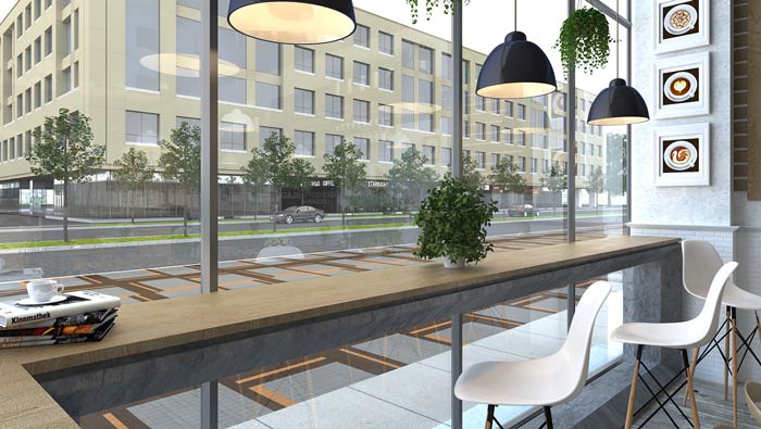 街角的咖啡店整體設(shè)計:設(shè)計師需要的不僅僅是室內(nèi)的設(shè)計,同時也需要與室外進行連接,戶外的陽光、建筑都在設(shè)計師的預(yù)想之中,設(shè)計師要做的就是將設(shè)計與周圍相互融合。