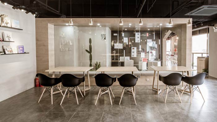 咖啡店卡座區(qū)設(shè)計:共享空間的交流盒子設(shè)計,讓這里成為各種文化和人群的聚合地,溫馨、安靜、理智、包容的空間,使的跨界文化的整合成為可能。