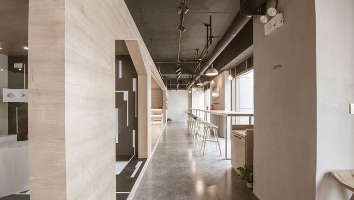 咖啡店走廊設(shè)計:相對封閉的空間在左側(cè),開放的空間在右側(cè),過道將封閉空間與開放空間連接在一起,暢通的過道承載起整個空間的運(yùn)作。