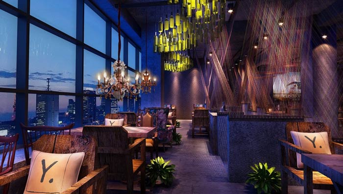 燒烤店窗邊餐區(qū)裝修設(shè)計:窗邊的餐區(qū)以雙人桌為主,這里對應(yīng)的主要客戶是情侶,情侶坐在這里邊就餐、邊欣賞美景,這里給人的感覺好似是,凌晨美景夜光杯一樣。