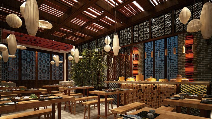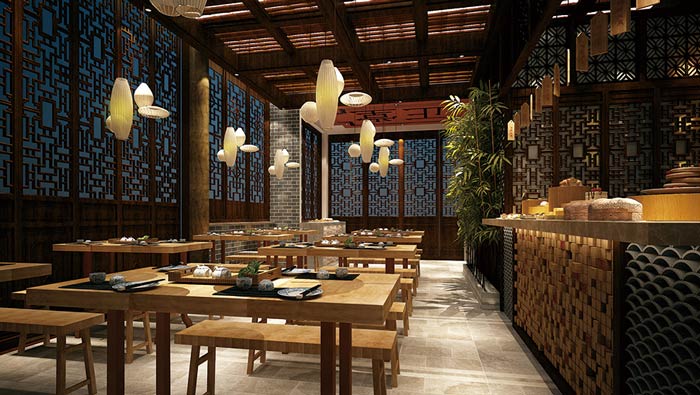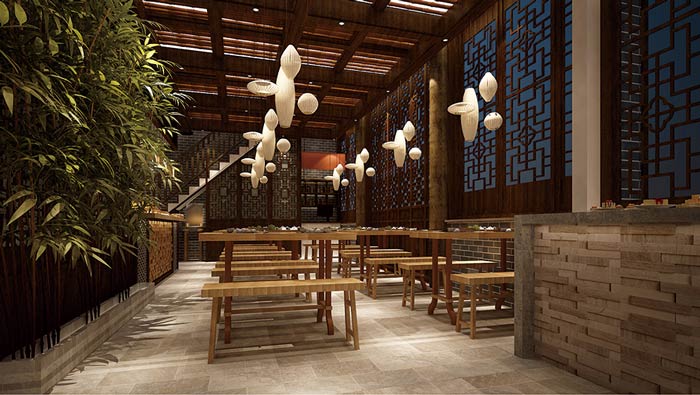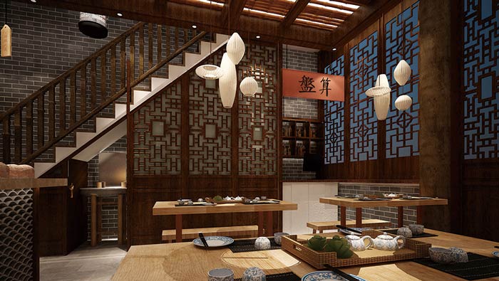 中式面館吧臺裝修設(shè)計:客戶進入到面館之后,好似回到了過去,回到了幾百年以前,這讓客戶有一種穿越之感,這里的時間也好似慢了下來,讓客戶享受這難得的平靜。