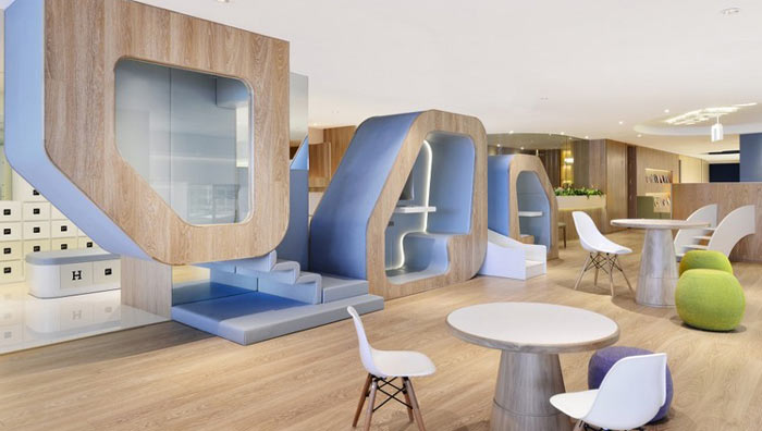 兒童教育培訓機構接待區(qū)設計:說是接待區(qū)其實也兼顧洽談與休閑,在設計中設計師在同一個空間內,設計并放置了兩套家具系統(tǒng),目的就是滿足兒童和成人各自的需求。