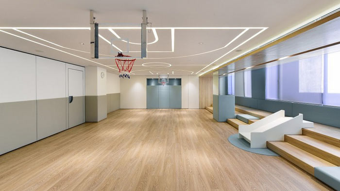 兒童教育培訓機構籃球場設計:孩子太小沒法學習籃球,沒關系在這里教育的不是成功投籃,而是培養(yǎng)孩子的興趣,在與隊員相互配合的同時,培養(yǎng)孩子們的團隊意識。