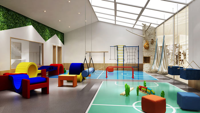 學(xué)前教育學(xué)校玩耍區(qū)設(shè)計(jì):透過前臺(tái)的入口,進(jìn)入到這里,孩子們?cè)谶@里愉快的玩耍,玩也是孩子成長(zhǎng)的一個(gè)重要過程,設(shè)計(jì)師希望孩子們?cè)谕娴倪^程中可以學(xué)到更多。