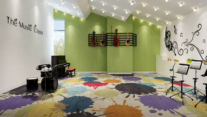 學(xué)前教育學(xué)校音樂教室設(shè)計(jì):音樂可以提高人的審美能力,凈化人們的心靈,樹立崇高的理想,學(xué)校希望通過音樂來抒發(fā)文化的情感,使文化在音樂中進(jìn)入孩子們的心田。