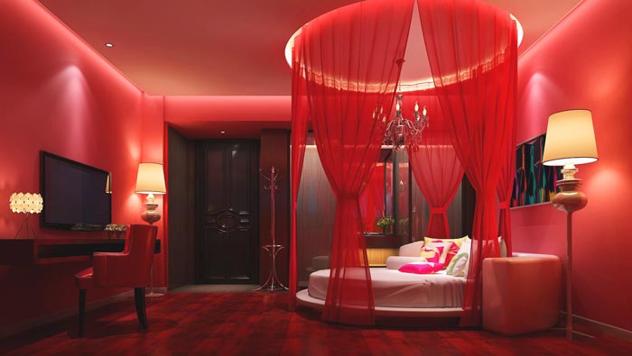 客房的設(shè)計(jì):此處描繪的是結(jié)婚當(dāng)晚的情景,戀人之間走向的目的地就是走入婚姻的殿堂,設(shè)計(jì)師希望在這樣讓彼此可以提前感受一下,讓彼此在感受中更加珍惜彼此,人本來(lái)是不相識(shí)的,但是通過(guò)世間的一切機(jī)緣,把我們彼此綁定在一起,這是多么大的緣分呀,讓?xiě)偃酥g更加珍惜彼此。