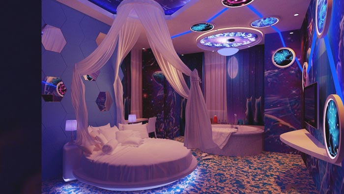 本次為主題情侶酒店裝修設計項目,設計面積1000平米,設計預算在300萬左右,整個酒店一共有28間房,設計師在設計的時候,對每一個客房都進行了獨有的設計,在設計師看來對于酒店來說,千篇一律的客房已經(jīng)不能滿足未來的發(fā)展需求,故此設計師希望打造當?shù)刈钣袆?chuàng)意最有逼格的主題情侶酒店。