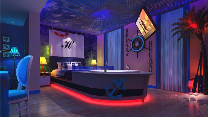 諾曼底號(hào)客房的設(shè)計(jì):相信每一個(gè)人都會(huì)向往星辰大海,但是由于各種原因的限制,要實(shí)現(xiàn)非常困難,故此設(shè)計(jì)師希望將此情此景定格在空間之中,在這樣的空間中欣賞泰克尼克號(hào)的愛(ài)情,會(huì)有另外一番感悟,對(duì)于戀人之間有著更大的觸動(dòng),以此讓彼此更加珍惜彼此。