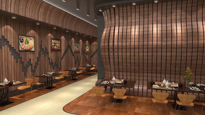 日式快餐廳餐區(qū)設(shè)計:日式料理的做法,也被做了不小的修改,目的就是希望符合國人的飲食,業(yè)主希望讓一切都本地化,避免出現(xiàn)無原則的抄襲,因為原版的不一定適合國內(nèi)。