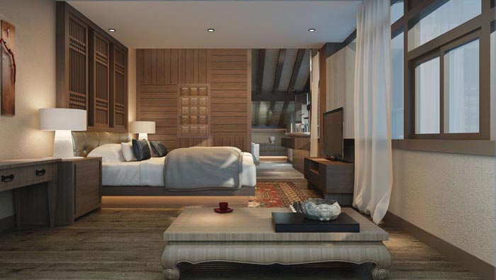 大床房的設(shè)計(jì):此處給人的第一印象就是一張?zhí)卮蟮拇?,擺放在空間的中央,其他幾乎沒有什么額外的裝飾,但是仔細(xì)查看之下會(huì)發(fā)現(xiàn),大床房的后面有一個(gè)冥想?yún)^(qū),就是讓客戶在這里打坐、休息、看書,讓客戶在這里體會(huì)到冥想的魅力。