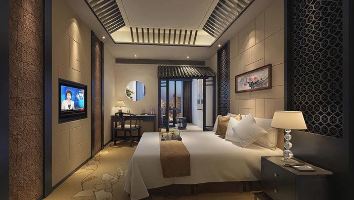 客房的設(shè)計(jì):在這里中式的設(shè)計(jì)讓人感覺是那么的親切,在這里設(shè)計(jì)師還原了古代的室內(nèi)格局,并在其中加入了現(xiàn)代的元素,這樣的設(shè)計(jì)讓顧客感受不到絲毫的不適,文化的傳承在這里蔓延,讓顧客在文化的熏陶下忘卻暫時(shí)的煩惱。
