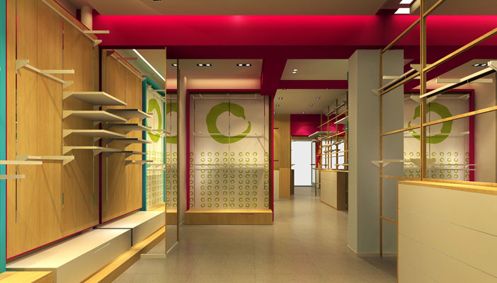 設(shè)計師的設(shè)計,利用色彩歡快作為整體基調(diào),使的店鋪的空間顯得更有趣。
