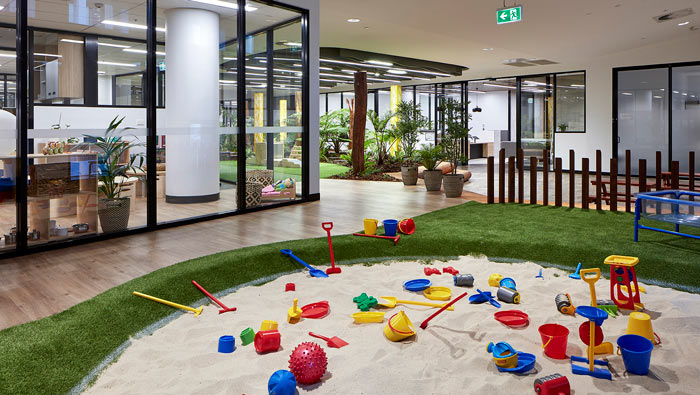 早教中心綠植設(shè)計(jì):現(xiàn)在的小朋友已經(jīng)鮮少能夠見到泥土地了,設(shè)計(jì)師希望通過(guò)綠植室內(nèi)的栽植,讓孩子回歸自然、回歸先天,讓孩子在這樣的空間中感受到自然的魅力。