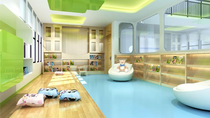閱讀區(qū)域的設(shè)計(jì):在這里有著各種各樣的圖畫,孩子們可以在這里欣賞到自己喜歡的各種各樣的書籍,讓孩子們從小養(yǎng)成獨(dú)立學(xué)習(xí)的習(xí)慣,設(shè)計(jì)師在設(shè)計(jì)中,特別強(qiáng)調(diào)隨意、自然,故此在設(shè)計(jì)中沒有規(guī)定座椅的位置,設(shè)計(jì)師希望在此處孩子們可以不受任何的干擾,做自己想做的事情。